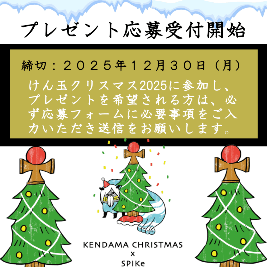 ・INSTAGRAMにてハッシュタグ「#けん玉クリスマス2025」をつけて動画投稿された方(ストーリーは除く)が当選対象です。
